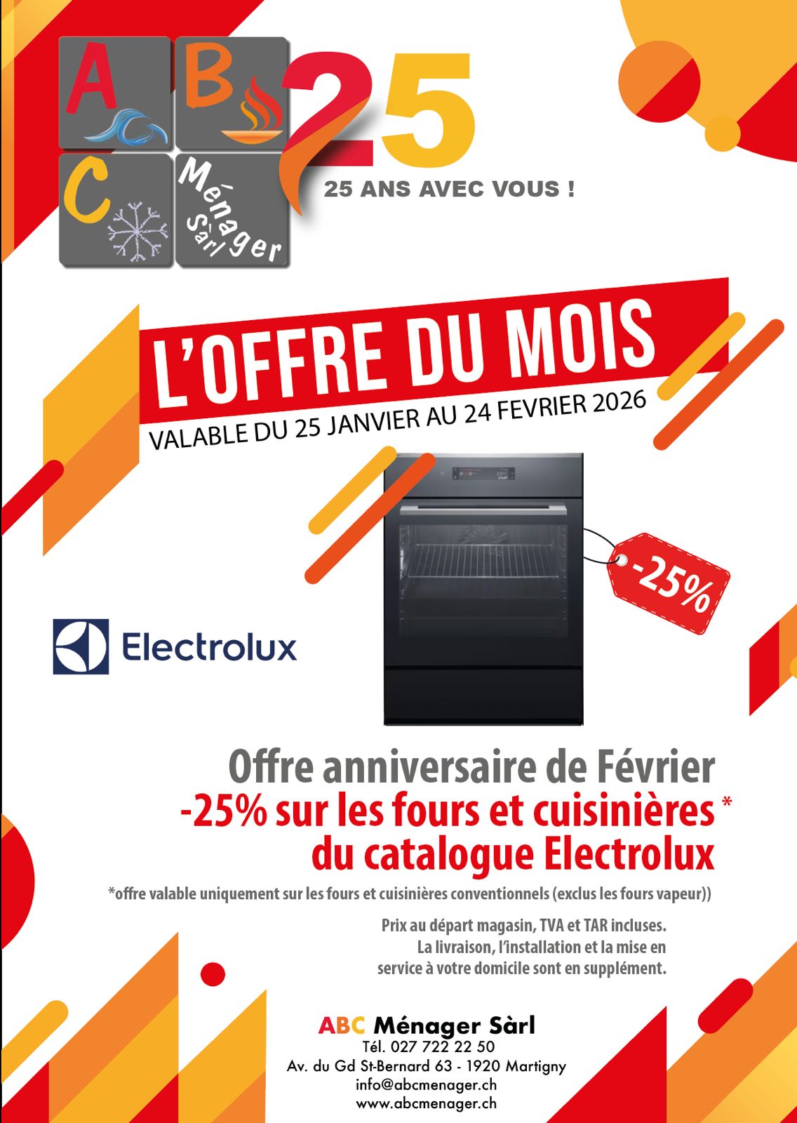 Offre valable sur les fours et cuisinière du catalogue Electrolux ( exclus les fours à vapeur)